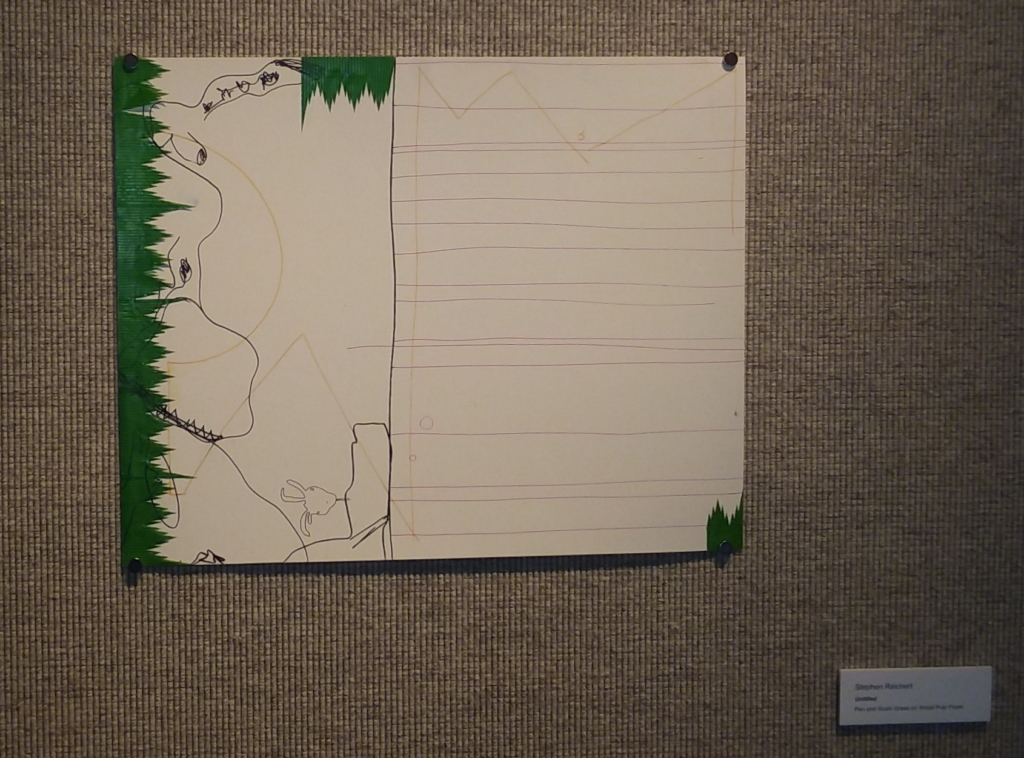 Stephen Reichert, I Should Have a Message For You, But I Have Forgotten It, 2016. Pen and sushi grass on wood pulp paper, 16" x 20". - 2019 Cimarron National - Gardiner Art Gallery - photo credit: Duncan Primeaux