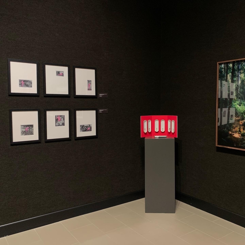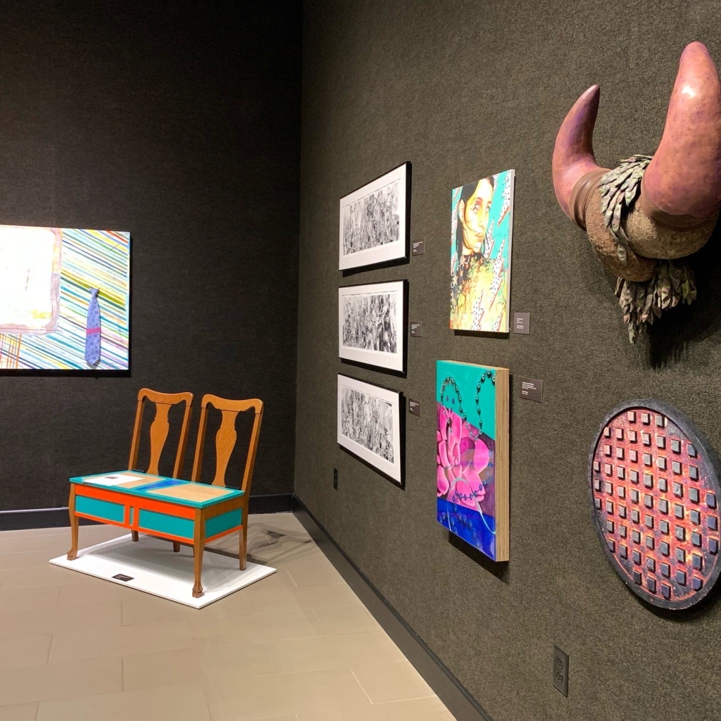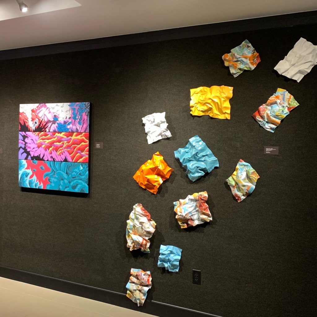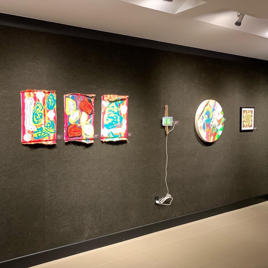 Stephen Reichert, I Once Stood in Line Behind Eric Davis at a McDonald's, 2021. Acrylic, pen, ink, and mixed media on canvas, 36" x 48".
