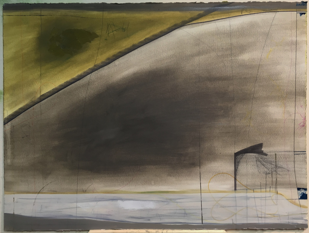 Stephen Reichert, You Are a Stranger, Lover. And You Grow Stranger by the Hour, 2021. Acrylic, charcoal, pen and ink on wood pulp paper, 22” x 30”.