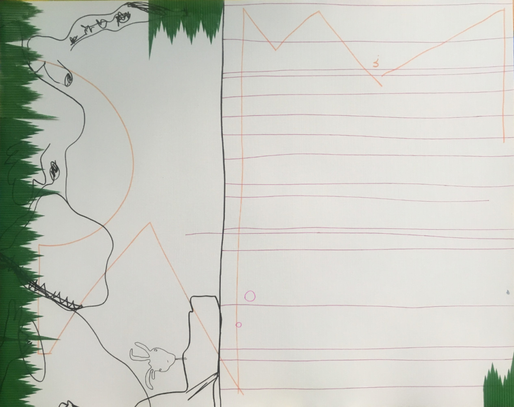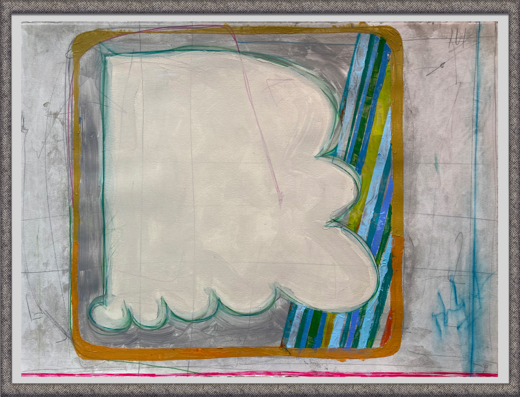 Nice Bunt, Stupid, 2021. Acrylic, charcoal, pen and ink on wood pulp paper, 30” x 22”.